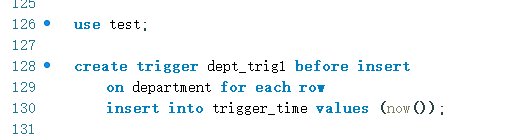 下面在department表上创建 BEFORE INSERT和 AFTER INSERT这两个触发器。在向department表中插入数据时,观察这两个触发器的触发顺序。创建触发器的代码如下: