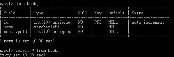 step1: 首先创建两张表 book 、booktype