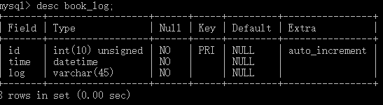 -> insert into book_log values(null,now(),"删除了一条数据");