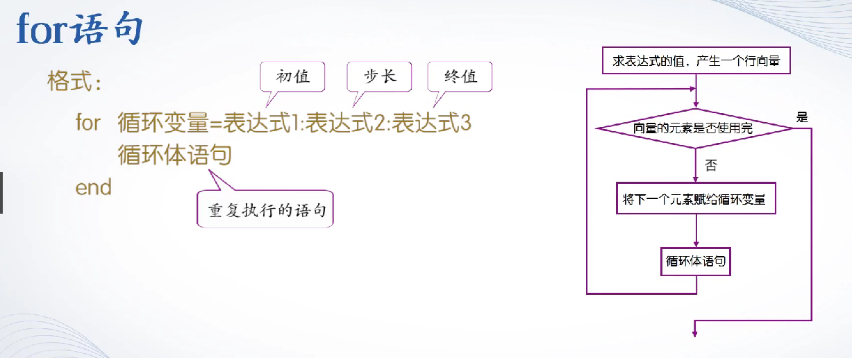 for循环变量=矩阵表达式
