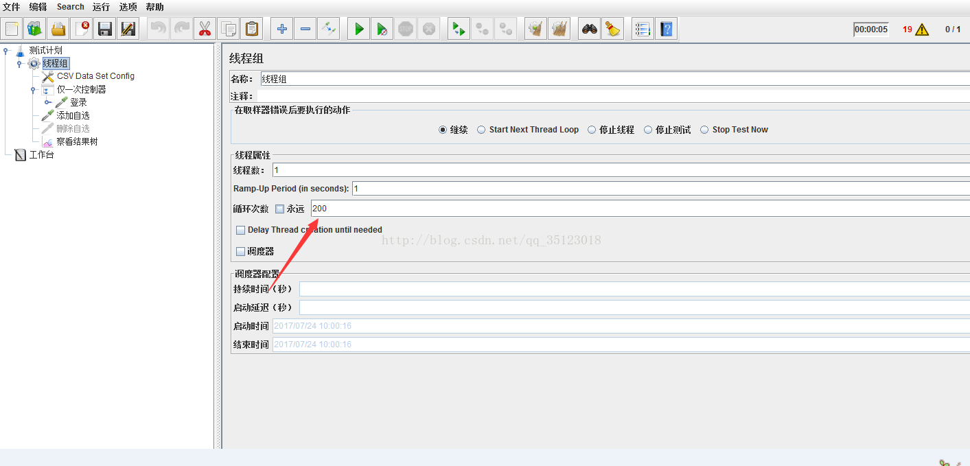 6、因为需要添加200只股票,所以线程组需设置为循环200次