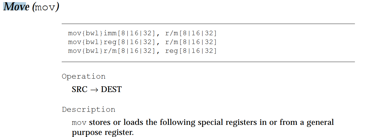 下面截图来源《x86 Assembly Language RM.pdf》,本文分析以下面为主理解