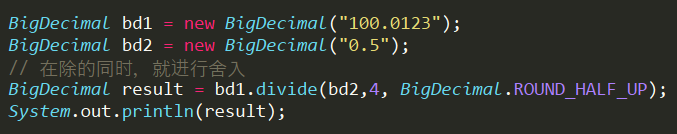 注:在实际使用时,我们除的时候往往会根据实际业务情况而选择一个精度标准和舍入策略,进行最后的取舍。