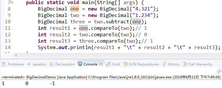 - BigDecimalA > bigDecimalB时,比较结果为1