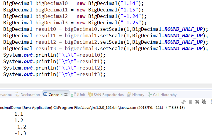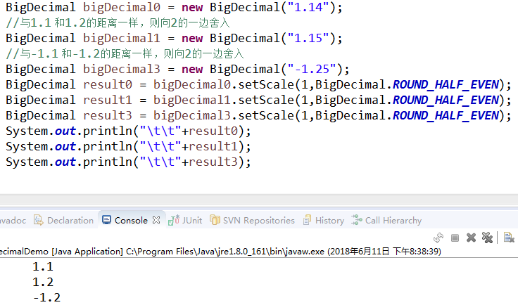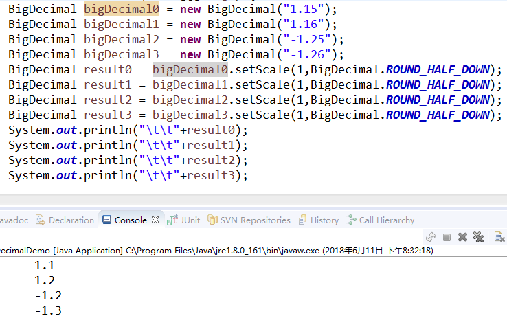ROUND_HALF_DOWN:0-5舍,6-9入,在绝对值的角度,舍和入: