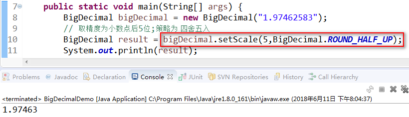 BigDecimal可以设置精度,以及相应的舍入策略: