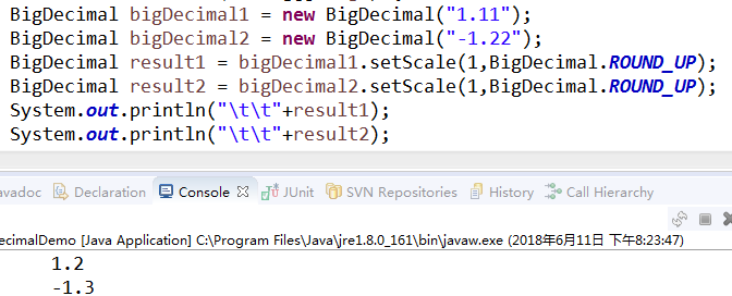 ROUND_UP:无论后面是多少(后面是0的话除外),在绝对值的角度,往大变: