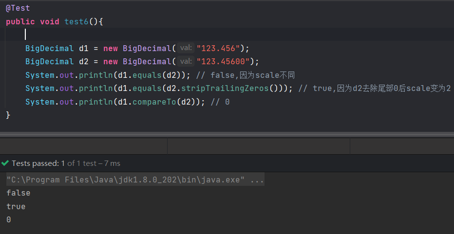 1.equals() 并不是不能使用equals方法比较两个BigDecimal只是我们通常使用compareTo