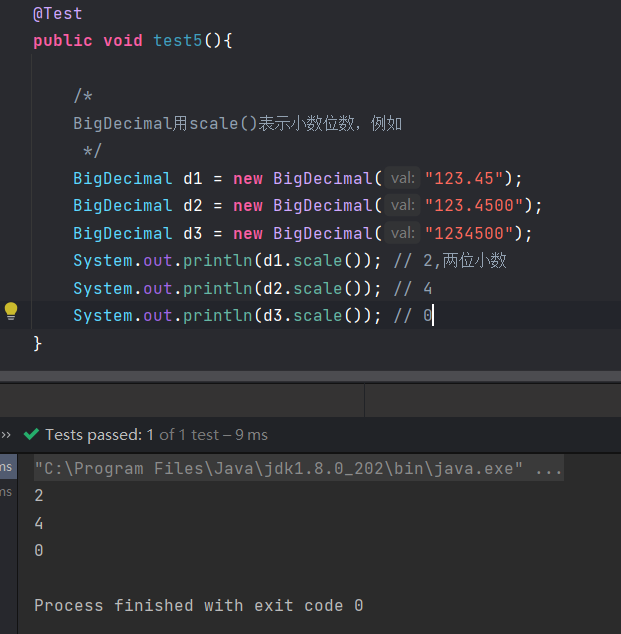 BigDecimal用scale()表示小数位数