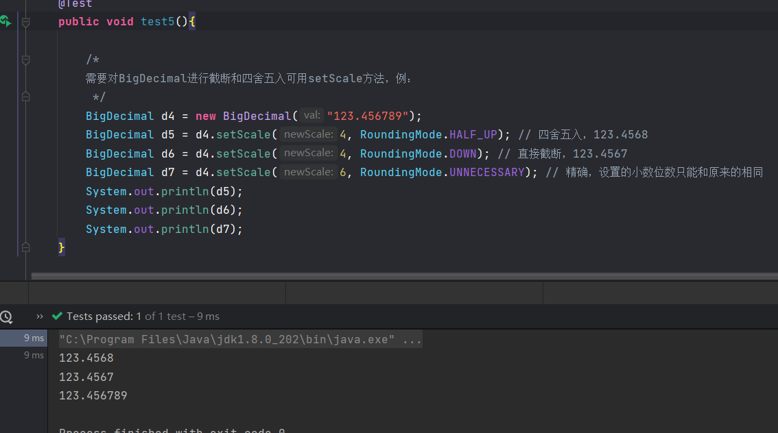 当然我们也可以设置scale,使用setScale方法,对BigDecimal进行截断和四舍五入