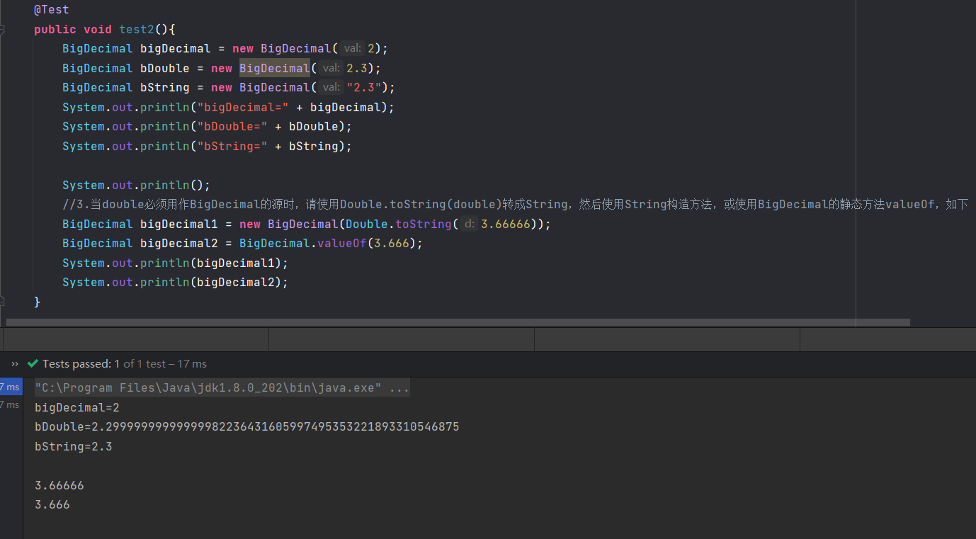 当double必须用作BigDecimal的源时,请使用Double.toString(double)转成String,然后使用String构造方法,或使用BigDecimal的静态方法valueOf,上述代码已经实现了