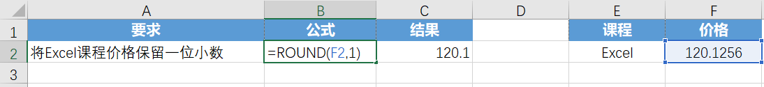 案例: 将Excel课程价格保留一位小数