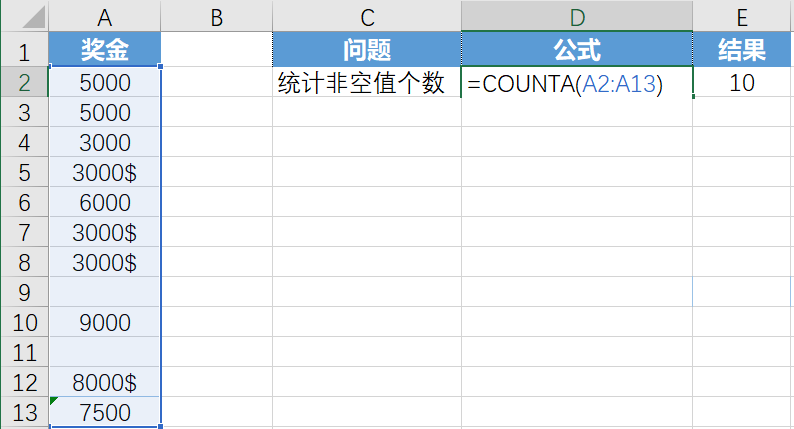 12.COUNTA函数