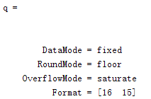 看到量化格式q包含着四个参数‘datamode','roundmode','overflowmode','format',默认分别是'fixed','floor','saturate',[16,15]。