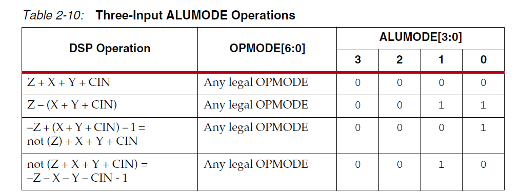 - ALUMODE = 0000选择Z +(X + Y + CIN)形式的添加操作。 CIN是CARRYIN多路复用器的输出(见图2-11)。
