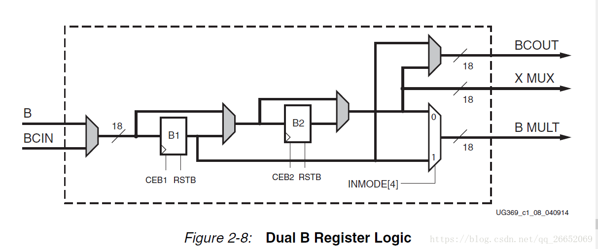 - INMODE [4]选择乘法器B端口,参见Figure-2-8,如下表2-6所示。