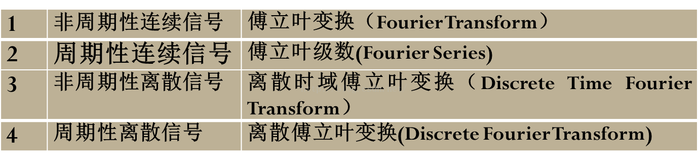 根据原信号的不同类型,我们可以把傅立叶变换分为四种类别: