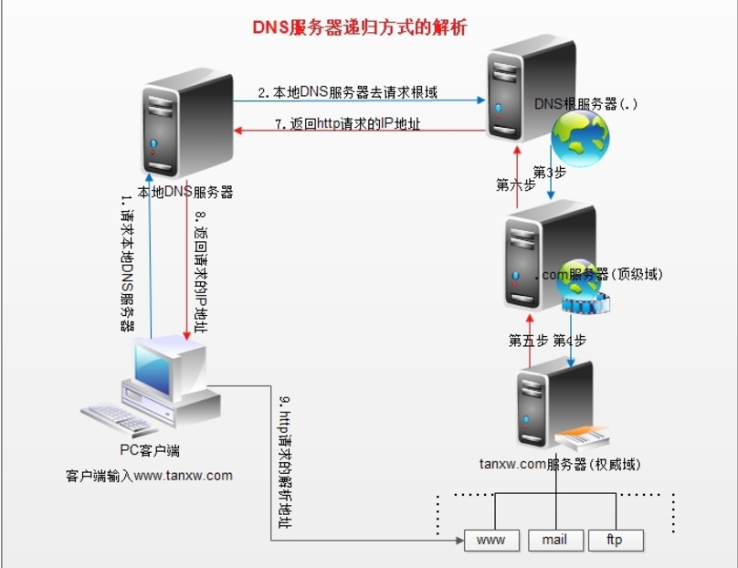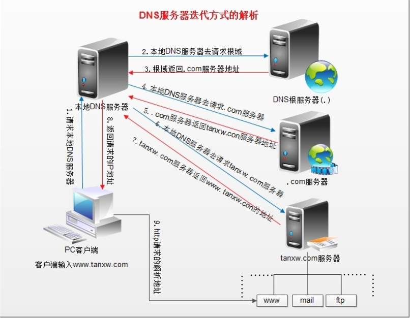 以上客户机和本地DNS服务器直接的查询方式,称为递归查询。