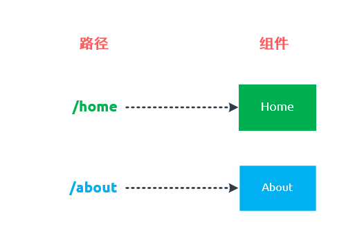 例如:'/home'是一条路由的key,它表示路径;{component: Home}则表示该条路由映射的组件。