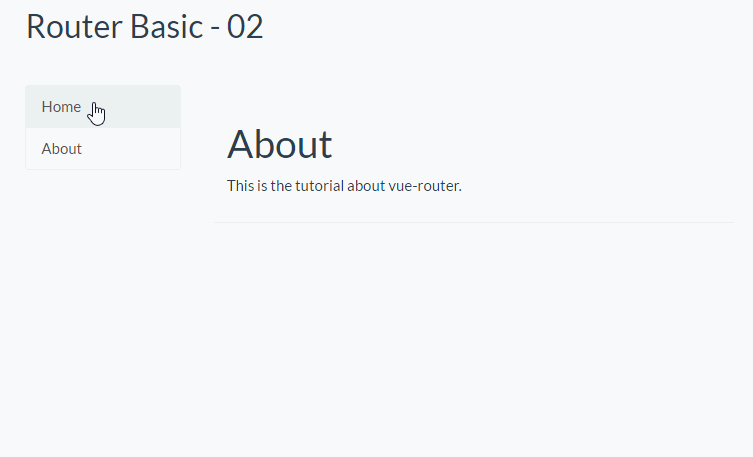 template: '<div><h1>About</h1><p>This is the tutorial about vue-router.</p></div>'