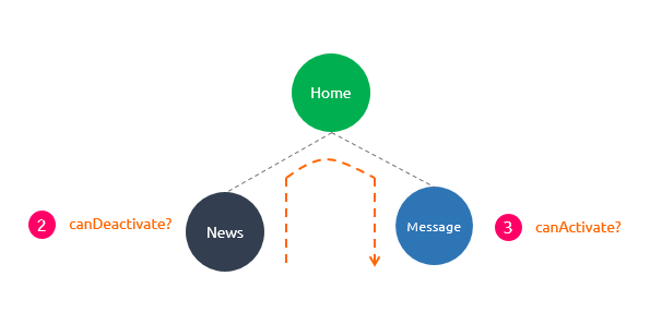 检查当前的组件是否能够停用以及新组件是否可以被激活。这是通过调用路由配置阶段的canDeactivate 和canActivate 钩子函数来判断的。