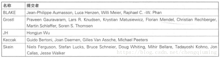 2010:SHA-3最终候选名单出炉,其中包括5个算法。SHA-3最终候选名单见下表。