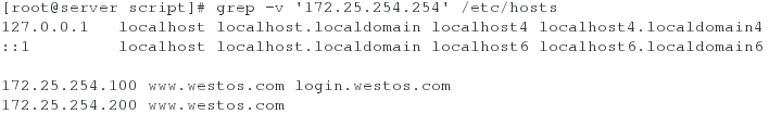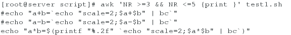 [root@server script]# awk 'NR >=3 && NR <=5 {print }' test1.sh ##输出3~5行的内容