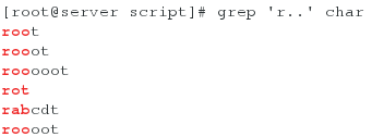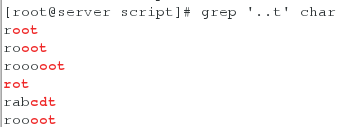 [root@server script]# grep 'r....t' char ##中间有几个点就匹配中间有几个字符的行