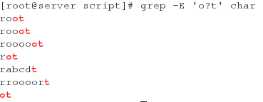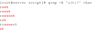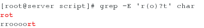 [root@server script]# grep -E 'ro?t' char ##匹配r和t之间有1个o或者没有o的行
