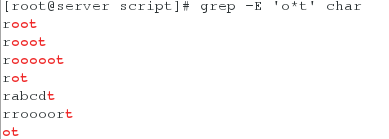 [root@server script]# grep -E 'ro*t' char ##匹配r和t之间有任意个o或者没有o的行
