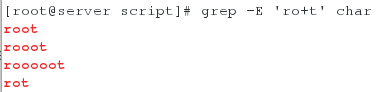 [root@server script]# grep -E 'ro+t' char ##匹配r和t之间出现1-任意个o的行