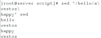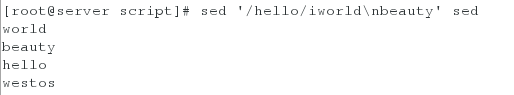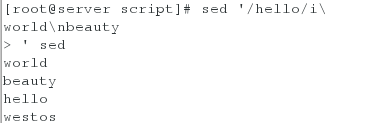 [root@server script]# sed '/hello/iworldnbeauty' sed