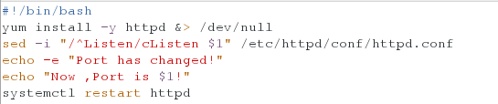 sed -i "/^Listen/cListen $1" /etc/httpd/conf/httpd.conf