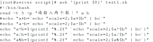 [root@server script]# awk '{print $0}' test1.sh ##输出文件整行的内容
