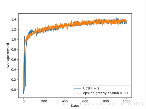 设定k-armed bandit的k=10,并且随机运行2000次。