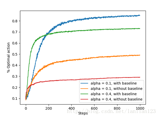 目前我们讨论过的所有方法都在某种程度上依赖于初始动作值的估计,。在统计学中,这些方法在初值是估计的情况下结果是有偏差的。在样本平均方法中,只有在所有的动作都至少选择了一次之后这种偏差才会消失。但在使用到常量α的方法中,虽然这种偏差在时间步长增加的过程中会减弱,但这种偏差永恒存在。在实践中,这种偏差通常不是一个考虑问题甚至在某些时候这种偏差会很有帮助。坏处在于初始参数必须是由用户提供的一系列值集合,不然只能都初始化为0,而好处是它以一种简单的方式提供了一些奖赏可期望程度的先验知识。
