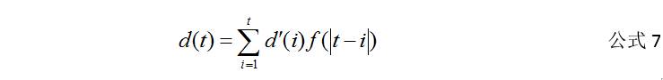 是否需要对Cij,Eij,Taj全部进行衰减,如下公式为计算历史数据的公式。d(t)表示t时刻的统计量,d’(i)表示i时刻的实际统计量,f(|t-i|)表示时间衰减函数,θ表示时间衰减参数,新时刻行为的影响越大,就应该跳大θ,反之亦然。