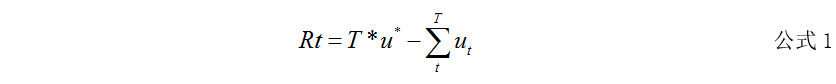 Rt是后悔值,T表示实验轮数,u*最佳手柄平均收益,ut表示t时刻,所选手柄的收益