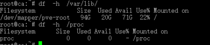 示例:df后接file或目录,将会显示该file或目录所在文件系统的使用情况