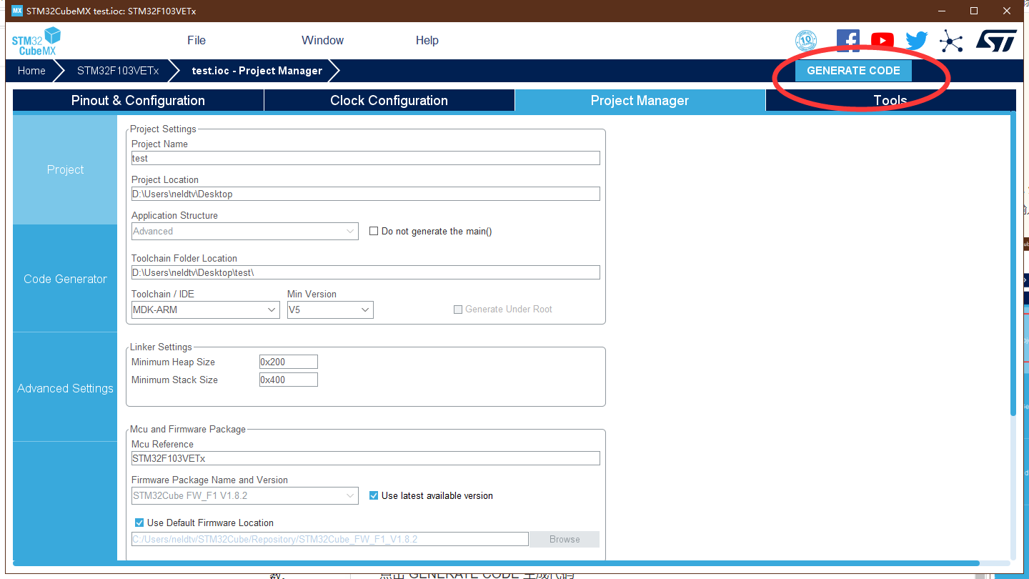 选择应用的 IDE 开发环境 MDK-ARM V5