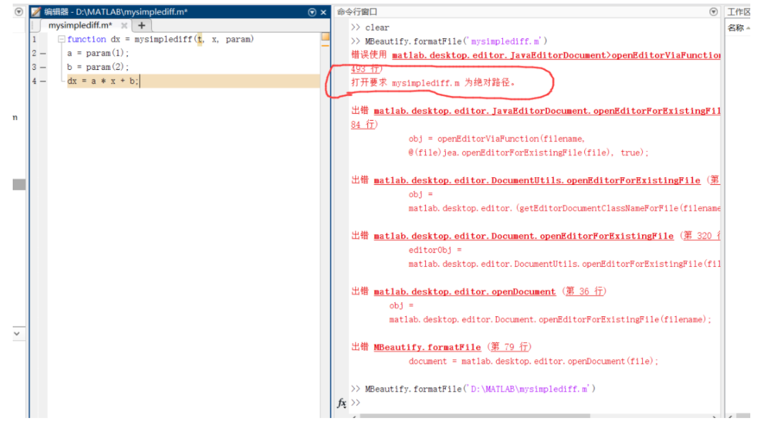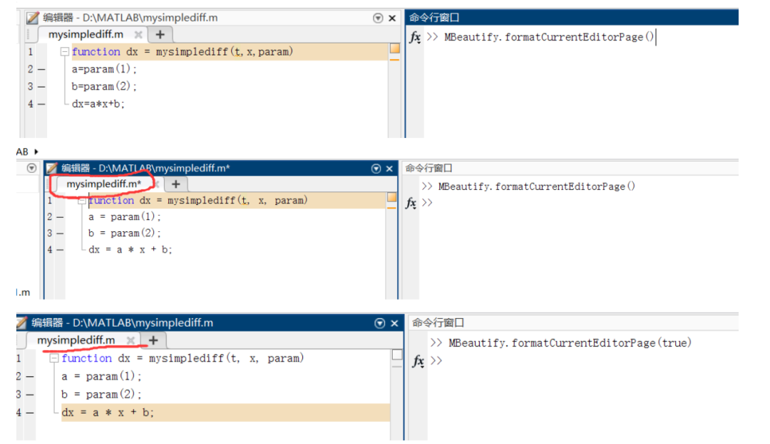 在MATLAB编辑器的当前活动页面上执行格式化。命令: