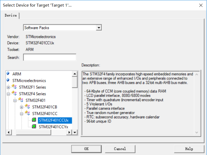 保存后,会跳出以下界面,选择对应我们开发板芯片的型号,然后点击OK