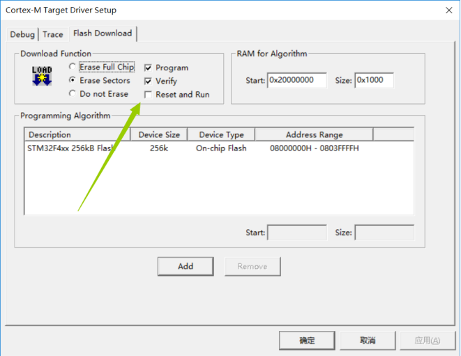 我们还要设置一下,烧录完程序后,芯片Reset and Run