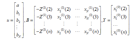 令 (i=1,2,…,N)的1-AGO序列为Xi(1),其中