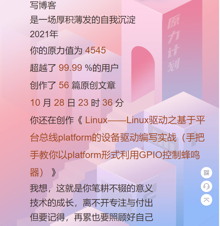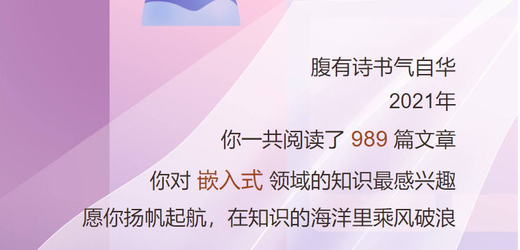 以上就是酷酷糖豆最近收集整理的关于2021年博客之星发榜了,荣进TOP50,物联网与嵌入式领域第二名0 引言1 2021我在CSDN的这一年 2 2021年博客之星结果 3 致谢的全部内容,更多相关2021年博客之星发榜了,荣进TOP50,物联网与嵌入式领域第二名0内容请搜索靠谱客的其他文章。