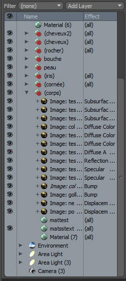 做位移贴图,我用了一本教程中的一种技术:他用了两种贴图(积极的和消极的),以及Modo的图层系统,彼此配置在一起。