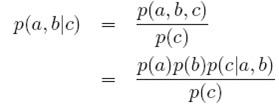 无法得到p(a,b|c)=p(a|c)p(b|c)