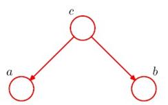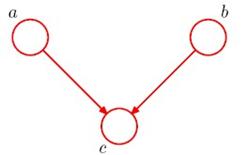 这种情况反过来了,c未知时,a和b是独立的;但当c已知时,a和b不满足条件独立,