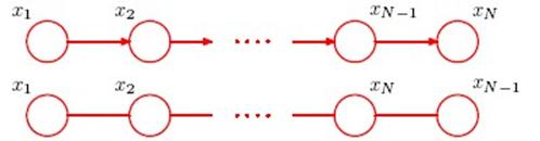 为了求p(xn),就是求xn的边界概率。这里都假设x的值是离散的。如果是连续的,就是积分,为了求这个边界概率,做这个累加动作,如果x的取值是k个,则要做k的(N-1)次方次计算,利用图结构,可以简化计算,这个简化方法就不讲了。
