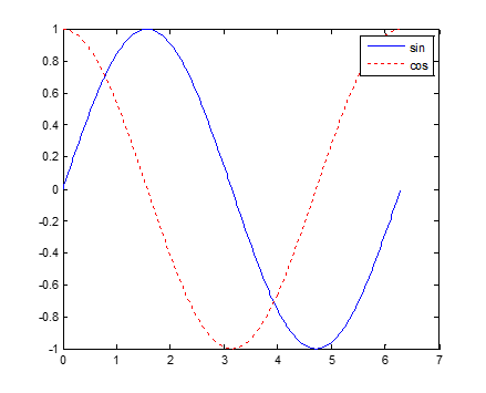 legend('sin','cos')
